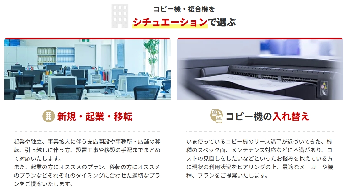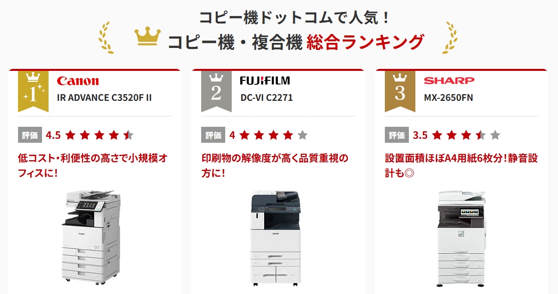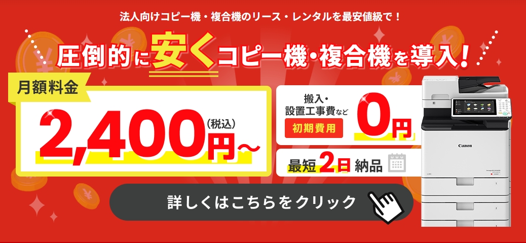 コピー機ドットコムは、業務用コピー機・複合機の販売・リース専門の代理店サービス。